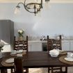 Al piano terra, l'ingresso conduce ad un'ampia zona giorno con un grande camino e una libreria. Da qui si accede alla sala da pranzo e al patio esterno fornito di tavolo e sedie. La spaziosa cucina completamente attrezzata si trova anche a questo livello, così come un piccolo bagno di servizio.