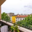 Questo elegante appartamento nel cuore di Milano si trova al sesto piano di un palazzo in zona Sant'Ambrogio, a meno di 20 minuti a piedi dal Duomo. Può ospitare fino a un massimo di 7 persone ed è arredato in stile moderno e funzionale. Si compone di un ampio e luminoso soggiorno con zona pranzo, angolo cottura e accesso a un comodo terrazzo, due camere doppie (di cui una con divano letto), una tripla e due bagni.