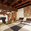 Questo meraviglioso appartamento si trova nel cuore del Ghetto ebraico, vicino a Campo de Fiori e ai principali luoghi di interesse turistico. È caratterizzato da ampi spazi e da un design moderno che si mescola con gusto ad elementi d’epoca come il soffitto a cassettoni e le pareti con pezzi di muratura antica. Si compone di un ampio soggiorno con zona tv, zona pranzo e cucina a vista, soppalco con letto matrimoniale e piccolo bagno, una comoda camera matrimoniale e un altro bagno con vasca. Nel salotto c’è un divano letto per 2 persone per cui i posti letto in totale sono 6. L’appartamento è al secondo piano senza ascensore di un palazzo d’epoca ed è molto luminoso e silenzioso, trovandosi in una zona pedonale.