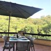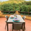 un letto singolo per una quinta persona. Dispone anche di un balcone e di una ampia terrazza con tavolo, sedie ombrellone e bbq che affaccia sul verde circostante. L'appartamento è silenzioso e dotato di tutti i comfort: AC, wifi, lavatrice e posto auto