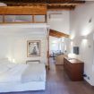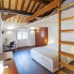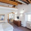 This characteristic apartment is located on the 3rd floor of an historic building (no lift) in the city center and can host up to 5 people. The paneled ceilings of the apartment and the excellent view overlooking the city roofs create a unique atmosphere. The flat comprises a comfortable living area with sofa bed for two people and a sleeping area with double bed and a mezzanine with a single bed, one bathroom with a shower and a well-equipped kitchen. The location is very convenient, in a quiet street close to Piazza Navona and within walking distance to the main touristic sites.