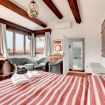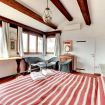 Questo bellissimo appartamento si trova al terzo piano senza ascensore dell’antico Palazzo Maggioni. L’appartamento è stato recentemente ristrutturato ma ha mantenuto le sue caratteristiche originali, tipiche dello stile veneziano classico, e gli arredi d’epoca. È un attico molto luminoso, grazie anche ai soffitti alti che rendono l’ambiente ampio e arioso ed ha una vista spettacolare a 360 gradi sui tetti di Venezia. Sviluppato su due livelli e può ospitare fino a 7 persone. Il primo livello è composto da un comodo ed accogliente salone con zona pranzo, una cucina accessoriata, tre stanze doppie (di cui una con letto alla francese) e due bagni. Nel secondo livello, al piano superiore, si trova un’ampia veranda-studio con letto per 2 persone ed un bagno con vasca. L’appartamento è molto silenzioso e tranquillo ed è dotato di aria condizionata, Wi-fi, lavatrice e tv.
